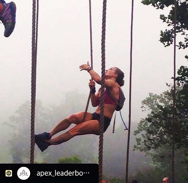 I was super-stoked to see Chapel Hill, NC, resident Joy Cox on NBC’s “Spartan: Ultimate Team Challenge” this summer. Cox, a step-sister to Rob Lindauer, owner of Surf & Adventure Co. in Virginia Beach, participated in the event which was inspired by Spartan Race. The new team challenge saw groups of friends, families, co-workers and more work together as they raced across specially designed Spartan courses, engineered to test their determination, endurance and will. Teams of five competed on demanding courses pushing through the pain in hopes of winning $250,000. Joy, who is the Project Coordinator/Manager at the Nutrition Obesity Research Center at UNC–CH Gillings School of Public Health as well as an instructor at Progression Climbing in Chapel Hill, lived that out for real when she came off an obstacle wrong and sprained her foot. Refusing to give in to the pain, Joy pushed through the course and with the help of her teammates won their semi-final event. I caught up with Joy on a trail run in Chapel Hill to learn more about the Spartan team challenge and her passion for trail running and rock climbing.